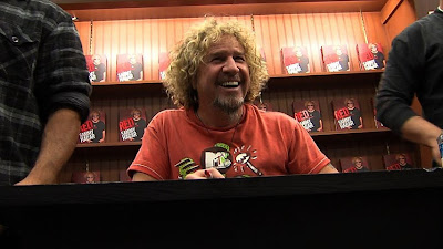 And when the Red Rocker comes to town, the people come out IN FORCE! Hundreds of people lined up in what might have been the worst weather of the past year… wind, rain, even tornadoes here and there… to catch a quick scribble from Van Hagar himself. One guy even flew in from Washington for this event. Damn.