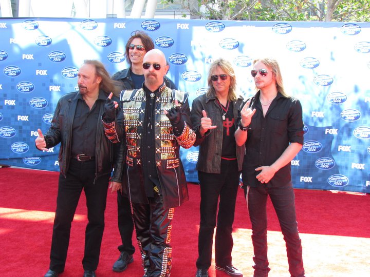 From across the red carpet, I saw an old bald man’s head bobbing around in the crowd. Jokingly, I said to my coworkers “That looks like f’ing Rob Halford over there”, thinking he was a bodyguard or something. No one knew who I was talking about, but as he got closer I noticed a strange glimmer coming from his suit. Once he came into full view and I saw how ridiculous he looked, I knew it had to be the rock god himself. Of course I didn’t see much of the show this year and was unaware that 4th placer James Durbin sang some of their tunes. While they passed us by on the red carpet without offering an interview, I still thought it was pretty darn cool that they walked past me. Oh, and speaking of…