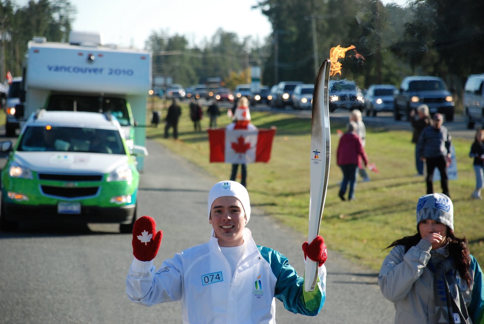 It first hit me as I am listening to some 80’s hair band over the satellite radio, not thinking of anything in particular, when all of a sudden the place around me looks strangely familiar. I am on route 4, passing  through a very small village called Hilliers. It was at this rather rural place, which I had never heard of before, where the true meaning and spirit of what this “gift” was, beginning to take shape. And just like that I am transported back in time. Thoughts of me in the back of a modified Camper known as “Media One”, my lens pointing out the back, toward a happy young man, his arm out stretched, holding the Olympic Torch as it passed through this small, yet excited, little community of Hilliers BC. It made me smile and think of just how lucky I was to be there at that moment in time, to bare witness to the beginnings of a Nation about to become a glow in the celebratory light of the Olympic Flame.