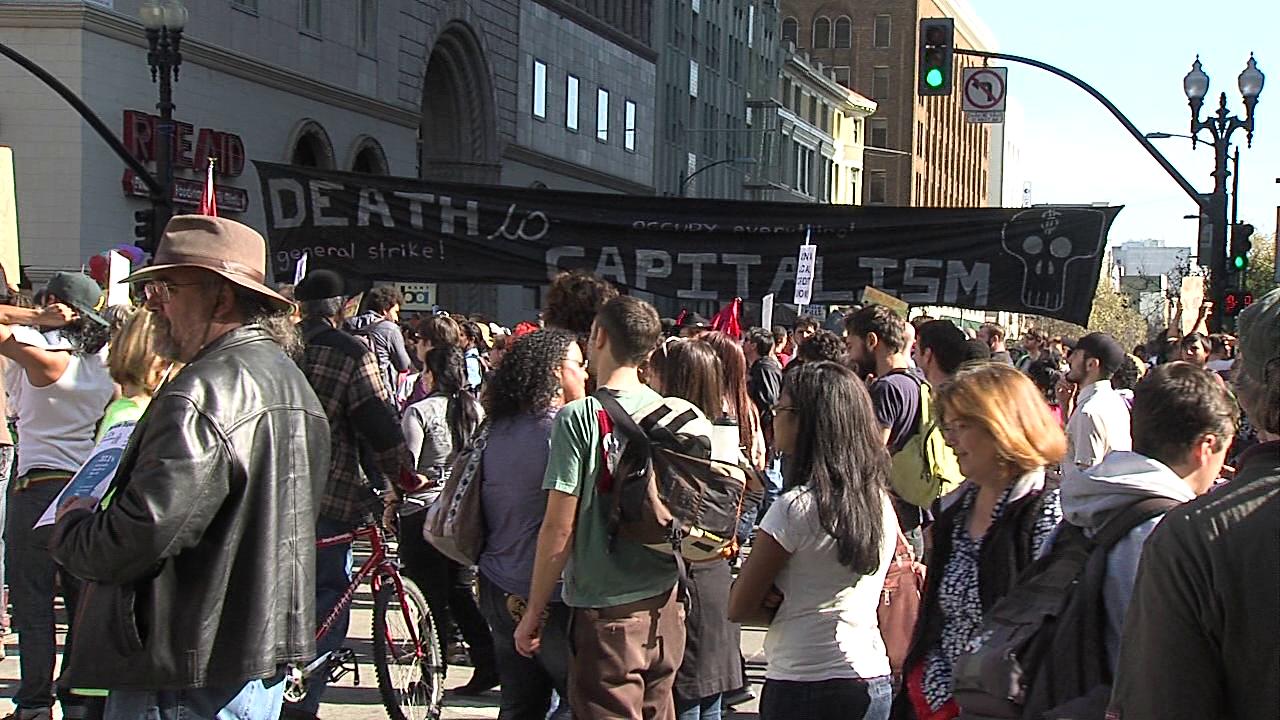 Later in the night, some anarchists started breaking windows and the teargas began to fly… but fortunately my tour of duty had concluded, so I was on my way home for the victory parade. At the end of the day, they managed to keep a bunch of truck drivers from getting paid (part of the 99%), restaurants and stores in downtown Oakland are being forced to close (part of the 99%), and I cried myself to sleep after being cussed out by an army of my friends and neighbors. Also someone pissed on our live truck and a drunk guy almost pulled his wang out during our live shot.