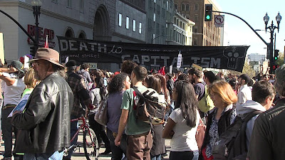 Without any general leader, planning seemed to be achieved through rumors and the occasional flier circulating through the crowd. Today’s goal: March on the Port of Oakland and shut that sucker down! The problem with this style of planning is that it isn’t very precise, leading many to wander along the 2 1/2 mile port looking for the designated site.