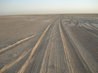 5 hours after leaving the Base and we could still see the lights clearly, things were not going well and there was no turning back, only the tracks of the vehicle ahead in the sand.